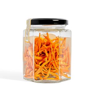 Quy cách đóng gói: Hũ thủy tinh lục giác có màng seal PS hàn miệng túi, bên trong có gói hút ẩm thực phẩm. Bên ngoài có hộp giấy giúp tránh ánh sáng tiếp xúc với sợi nấm.