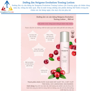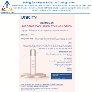 – Dưỡng ẩm và cân bằng da Neigene Evolution Toning Lotion của Unicity giúp cải thiện tông màu da, trắng da hiệu quả. Đây là một trong những sản phẩm không thể thiếu trong bộ chăm sóc da hàng ngày của mọi chị em phụ nữ.