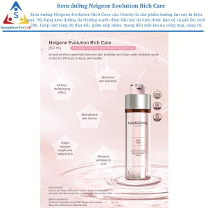 – Kem dưỡng Neigene Evolution Rich Care của Unicity là sản phẩm dưỡng ẩm cực kì hiệu quả. Sử dụng kem dưỡng da thường xuyên đảm bảo làn da luôn được bảo vệ và giữ ẩm suốt 24h. Giúp làm tăng độ đàn hồi, giảm nếp nhăn, mang đến một làn da căng mịn, rạng rỡ.