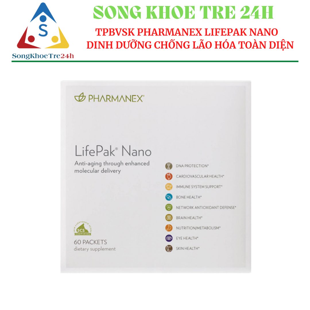 LifePak® Nano là một lập trình dinh dưỡng chống lão hóa được xây dựng để nuôi dưỡng và bảo vệ các tế bào, mô và các cơ quan trong cơ thể với mục đích cụ thể là chống lại sự tàn phá của lão hóa. LifePak Nano cung cấp khả dụng sinh học cao nhất với quy trình lần đầu tiên sử dụng Công nghệ Nano và hàm lượng chất dinh dưỡng chống lão hóa cao cấp trong một công thức toàn diện chỉ có sẵn thông qua Pharmanex. Công thức độc quyền này bảo vệ DNA và các tế bào, nuôi dưỡng và bảo vệ não, tăng cường hệ thống miễn dịch, hỗ trợ sức khỏe tim mạch, giúp điều chỉnh sự chuyển hóa đường trong máu, bảo vệ sức khỏe của mắt, giúp xương chắc khỏe, thúc đẩy chức năng của khớp và khả năng vận động, giúp bảo vệ chống lại các tác động của bức xạ từ mặt trời, và giúp duy trì độ đàn hồi và tông màu da khỏe mạnh.