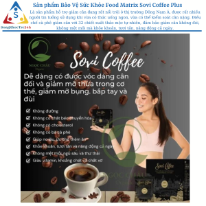 Với sản phẩm Food Matrix Sovi Coffee Plus thì vừa được hưởng cả vitamin, khoáng chất, chất xơ, đặc biệt là hạt cà phê Arabica thơm ngon, thư giản mà lượng calo rất thấp. Đặc biệt kiểm soát cân nặng với đốt cháy mỡ tự nhiên, không mệt mỏi, không nhức đầu, không đánh trống ngực, ngủ sâu, không làm mất ngủ.