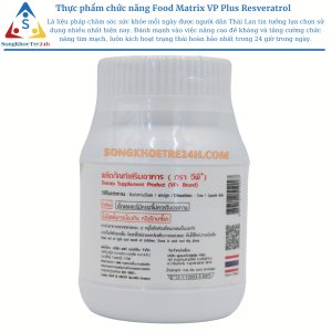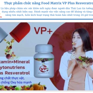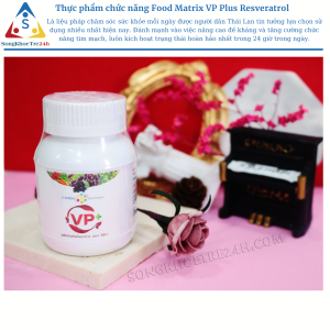 Sản phẩm Food Matrix VP Plus Resveratrol là liệu pháp chăm sóc sức khỏe mỗi ngày được người dân Thái Lan tin tưởng lựa chọn sử dụng nhiều nhất hiện nay. Đánh mạnh vào việc nâng cao đề kháng và tăng cường chức năng tim mạch, luôn kích hoạt trạng thái hoàn hảo nhất trong 24 giờ trong ngày.