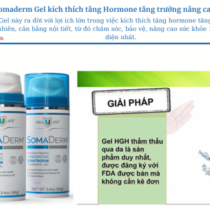 Sản phẩm đang nổi trội, được đánh giá cao, nhiều người tin tưởng sử dụng là Somaderm Gel của Mỹ, tăng sinh HGH 1 cách tự nhiên, cân bằng nội tiết tố, từ đó mang lại hiệu quả về sức khỏe, sắc đẹp cho đến tinh thần. Để hiểu hơn nó cụ thể là gì thì cùng chúng tôi đi tiếp vào phần bên dưới nhé.