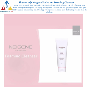 – Sữa rửa mặt tạo bọt Unicity Neigene Evolution Foaming Cleanser mang đến cảm giác làm sạch sâu, loại bỏ đi các tạp chất trên da. Với kết cấu dạng kem mềm không chỉ mang đến tác động làm sạch và sáng da mà còn giúp mang đến hiệu quả tốt trong quá trình dưỡng ẩm. Phù hợp với mọi loại da từ da khô, da thường đến da dầu, da hỗn hợp.